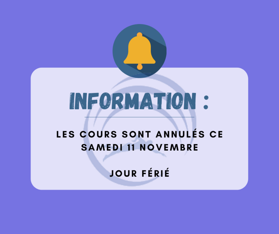 Ce samedi 11 Novembre étant férié, les cours sont annulés.