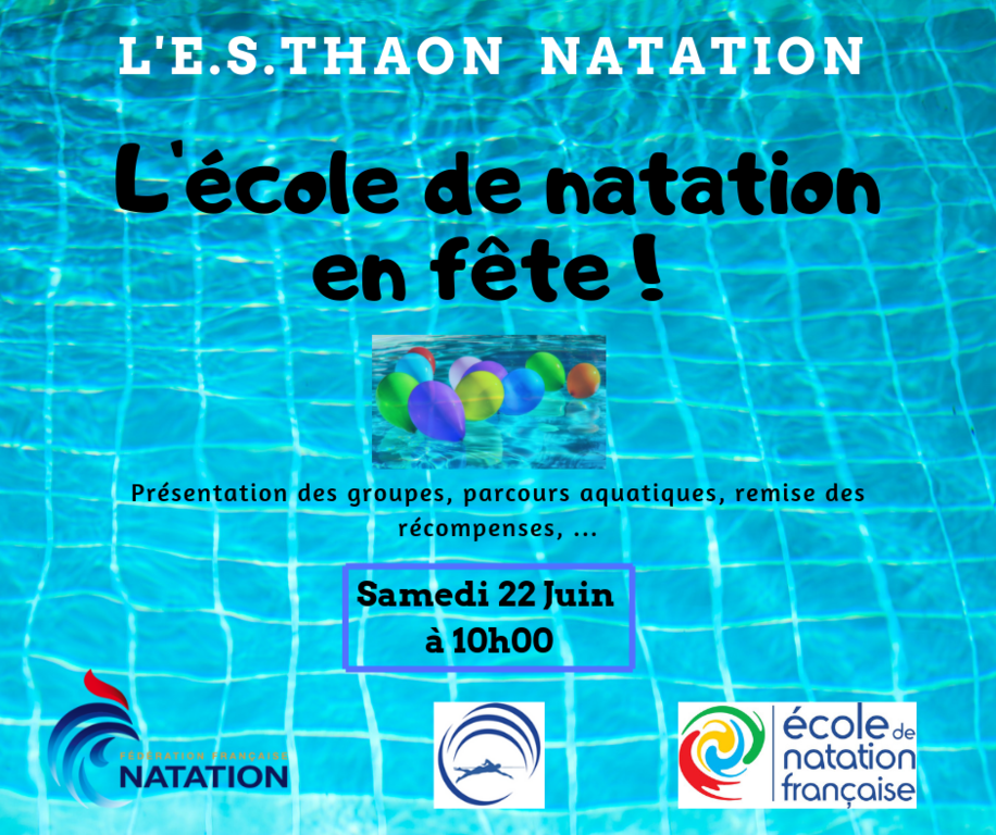 L'E.S.Thaon Natation fête son Ecole de Natation le Samedi 23 Juin à 10h00, à la piscine de Thaon-les-Vosges.